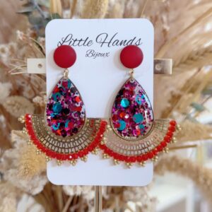 Boucles D’oreilles “FLORA” – Confetti Chic (Rouge/Turquoise/Fushia)