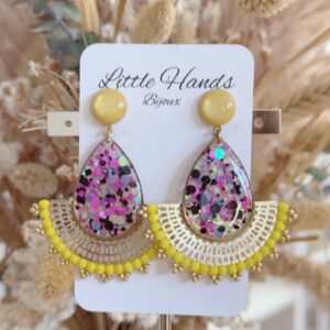 Boucles D’oreilles “FLORA” – Candy Boom (Jaune/rose/violet/noir)