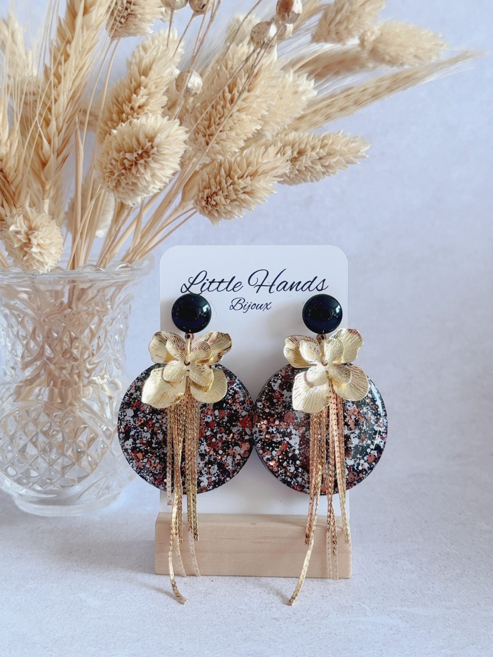 Le rond en résine pailletée capte la lumière à chaque mouvement et apporte cette touche unique propre à Little Hands Bijoux : de la couleur, de la brillance… et beaucoup de bonne humeur 💛