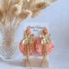 Ce modèle signature associe un cabochon lumineux, une délicate fleur dorée et de fines pampilles en mouvement, pour un rendu à la fois élégant et plein de caractère.