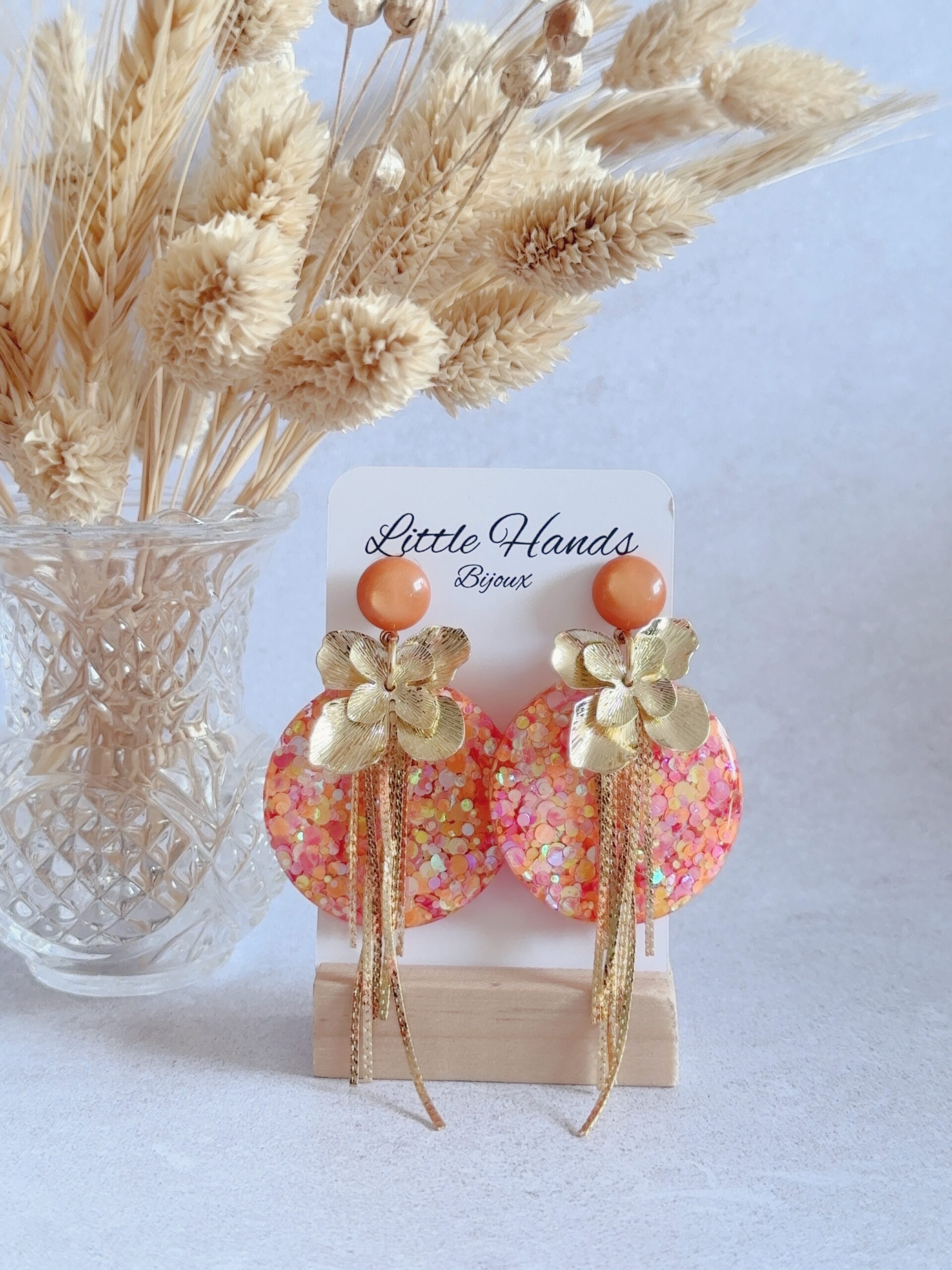 Le rond en résine pailletée capte la lumière à chaque mouvement et apporte cette touche unique propre à Little Hands Bijoux : de la couleur, de la brillance… et beaucoup de bonne humeur 💛