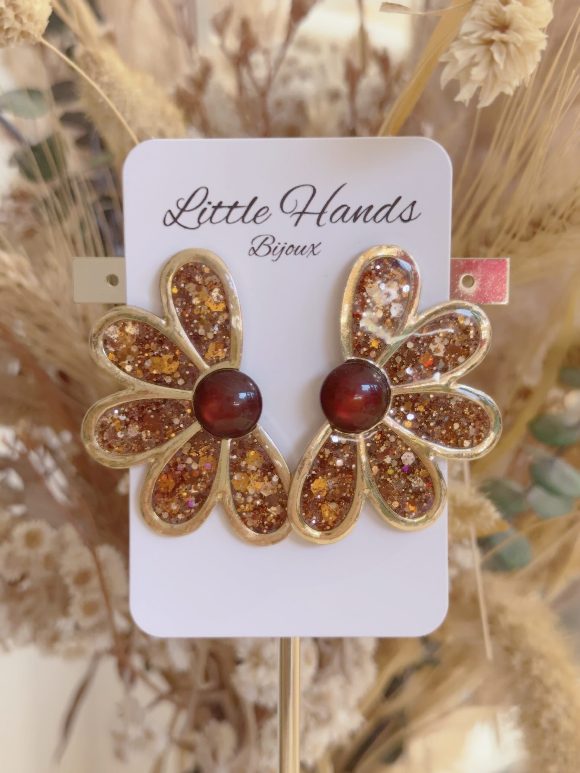 Avec ses pétales pailletés et son cœur en résine, Daisy attire tous les regards et sublime vos tenues avec audace.