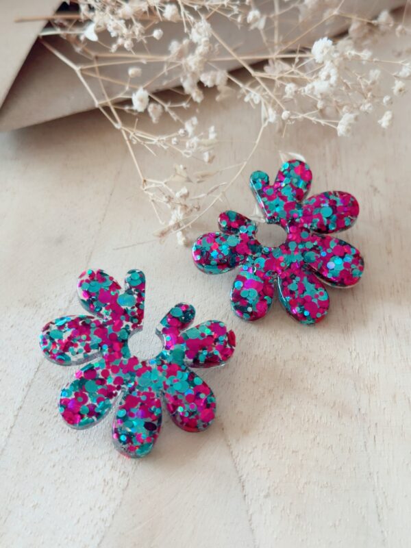 Boucles d’oreilles en résine et beaucoup de paillettes